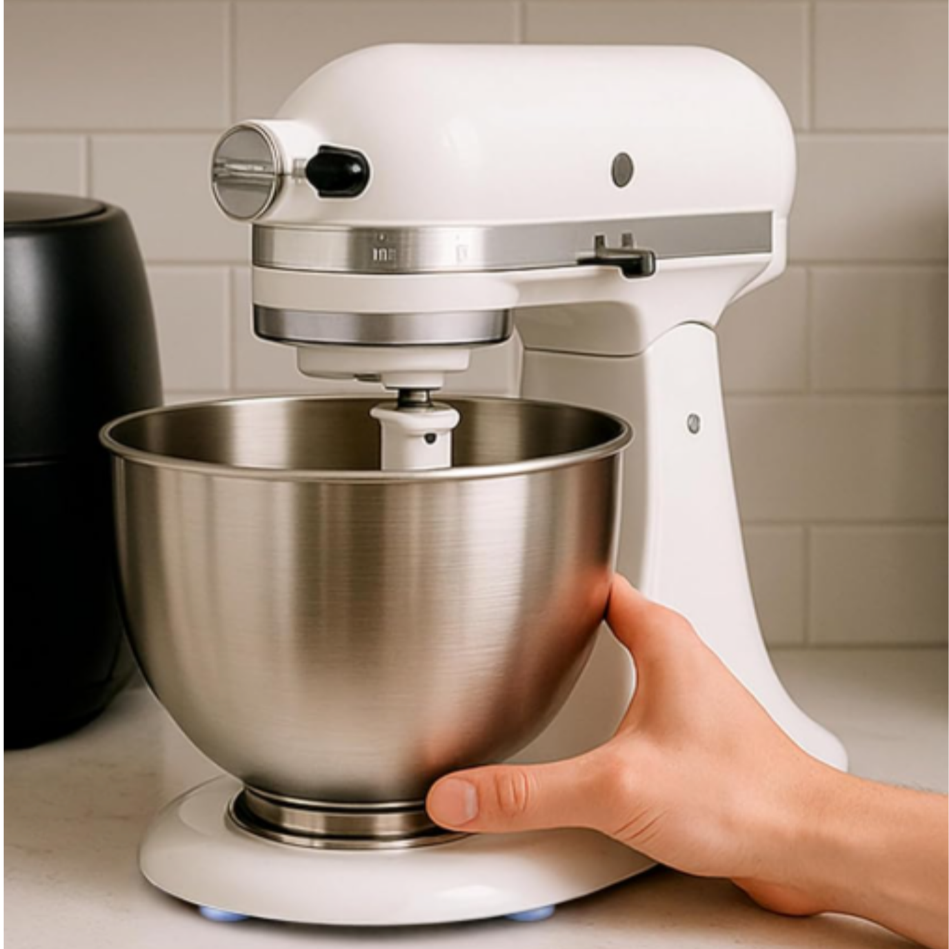 The mixer is heavy (22-26 pounds depending on the model). It's tall (doesn't fit under standard upper cabinets). You use it constantly if you bake regularly. And most storage solutions make it incredibly hard to access.