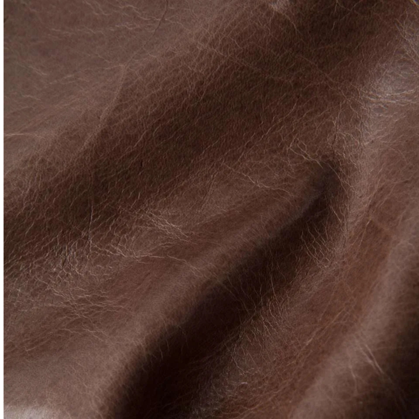 Full-grain Italian leather that's soft, drapey, and rich with character. The dove color is a warm neutral that pairs beautifully with wood tones and brass. This is upholstery that ages gracefully instead of falling apart.