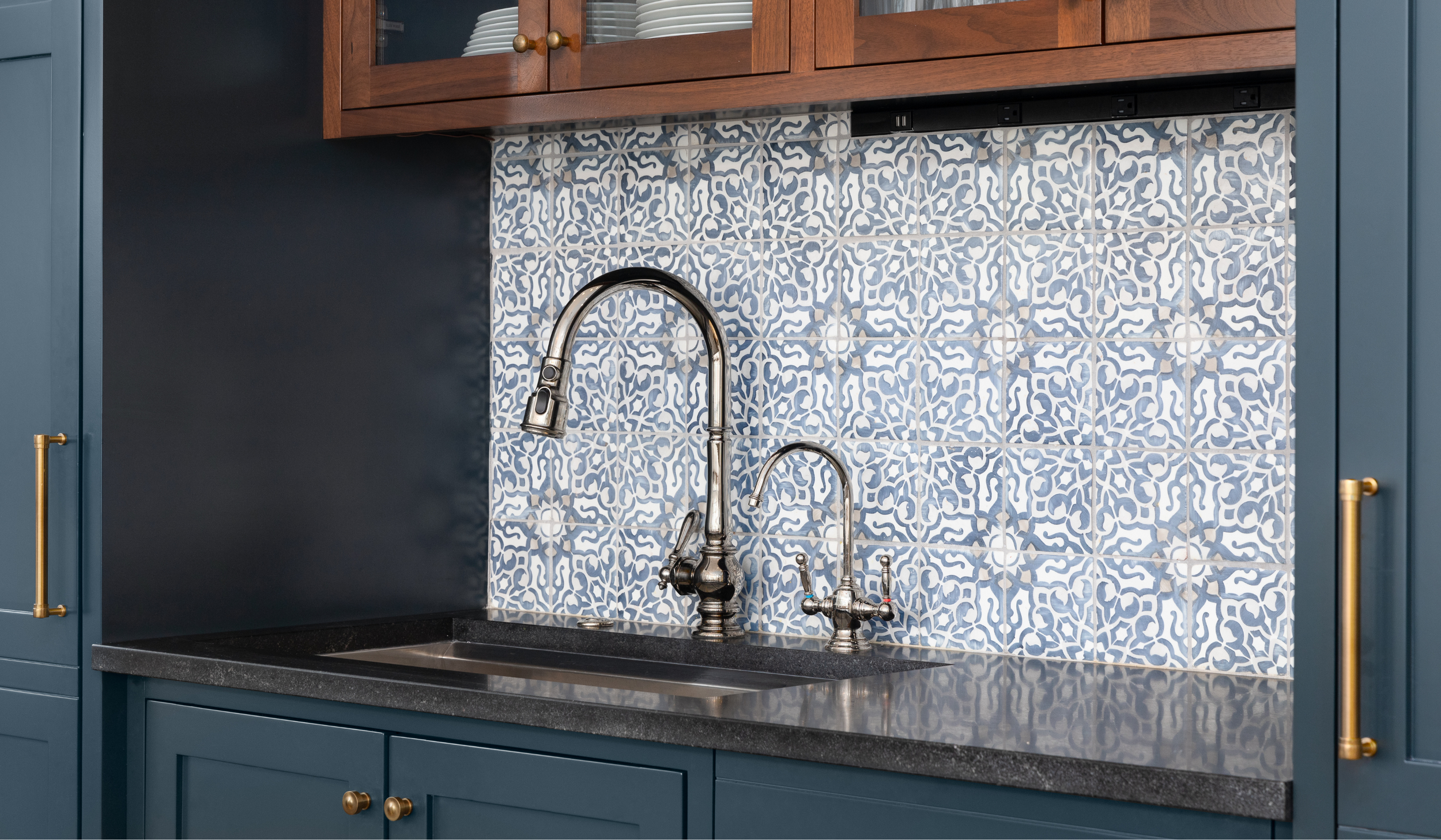 A tile feature behind the range (zellige, natural stone mosaic, hand-painted tile) is one of the most impactful design moments in a kitchen. It's where personality lives.